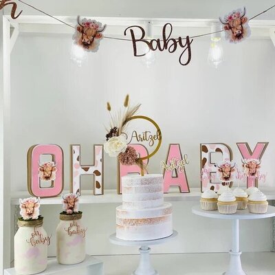 The warm and inviting peach color of the banner creates a soft and comforting atmosphere for your little one to enjoy, while its delicate and charming design is sure to make any celebration memorable and special.